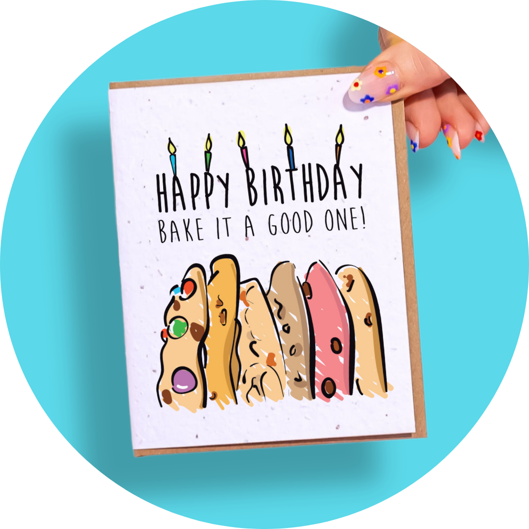 For cookie lovers everywhere reminding them to bake their birthday a good one, and people with a good sense of humour who want to give a green greeting card.
