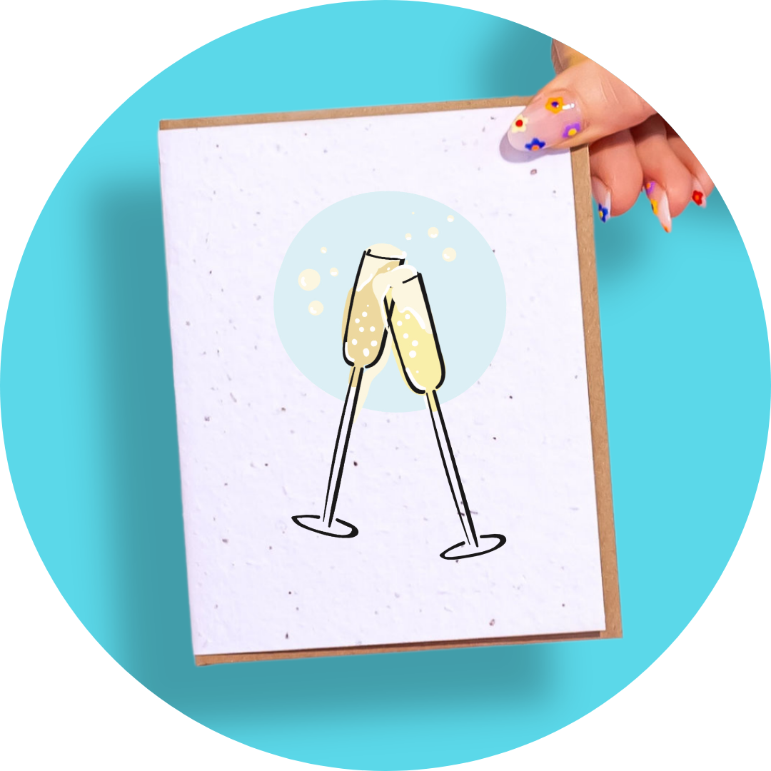 A champagne toast to a new beginning, a job well done, or a congratulations on a major milestone - all can be celebrated with a plantable greeting card!
