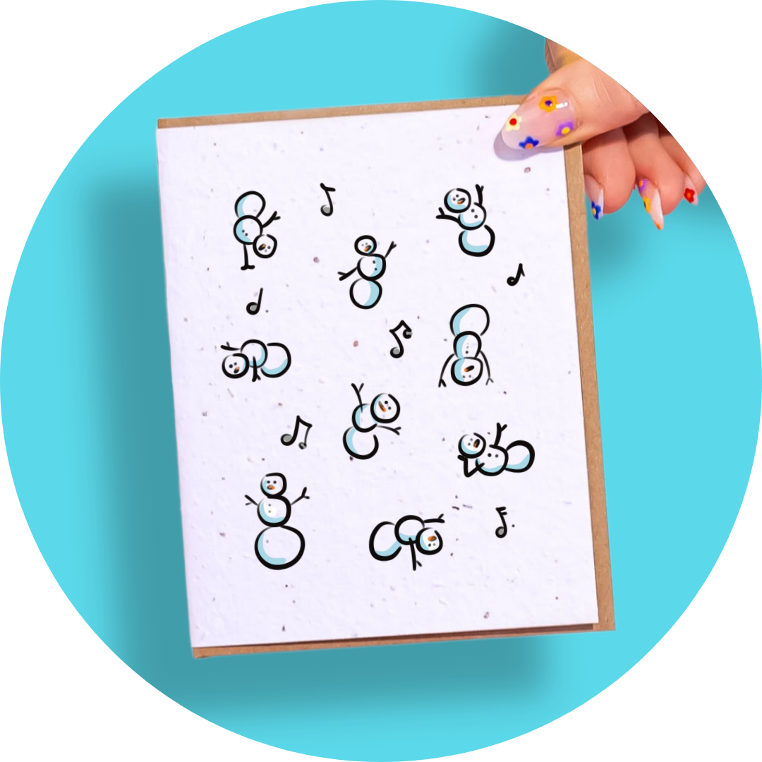 Make your holidays a little more silly with these acrobatic snowmen on a plantable card!