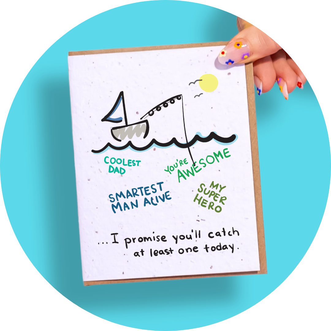 Don't just cast a line on Father's Day - hook him a whole basket full of compliments! Fishing for Compliments is a unique plantable greeting card that shows your appreciation for dad with a fun, fishing-inspired design.