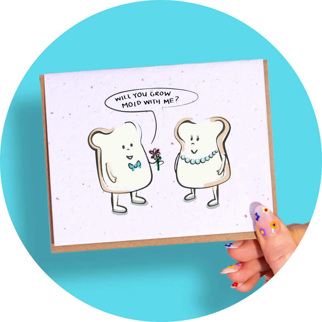 Grow your love with the perfect anniversary or wedding card: Grow Mold! This plantable greeting card has everything you need: bread, love, and all the romantic feels. Plant it, watch it bloom...it's a sweet way to show your adoration!