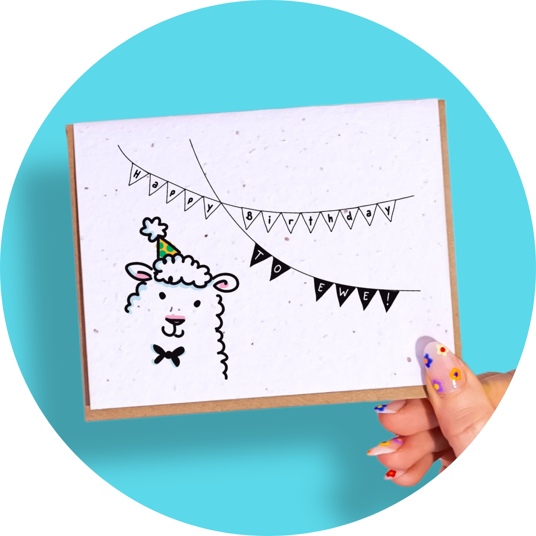 Don't be sheepish, greet your baaaa-est friend with this special "HBD to Ewe" card and watch your friend's birthday joy grow. A unique, memorable, and sustainable way to say "happy birthday!" to someone you hold dear.