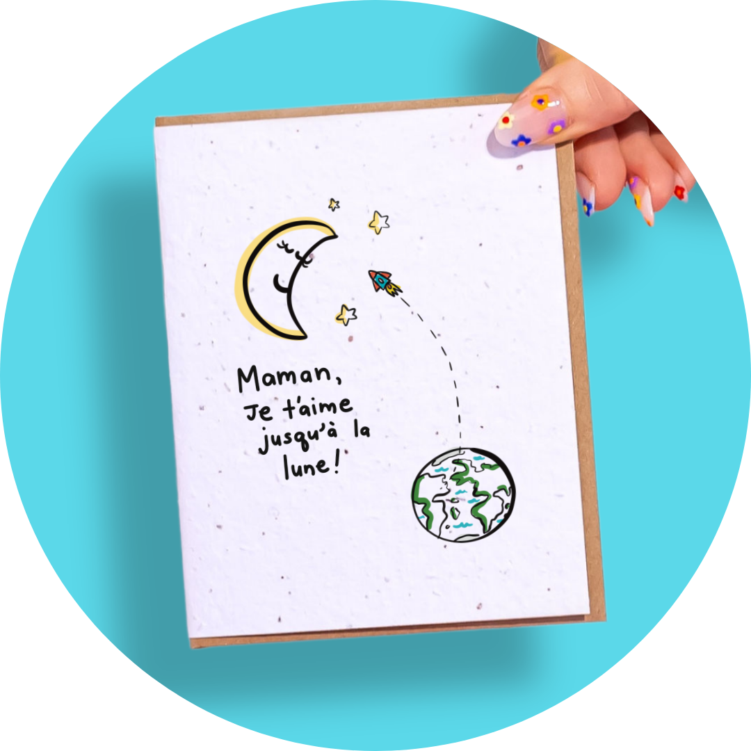 Say "Je t'aime Maman" with our newest French-inspired Mother's Day card! Made with plantable paper, this seedpaper eco-friendly card is a great way to tell Mom she is loved, to the moon and back!