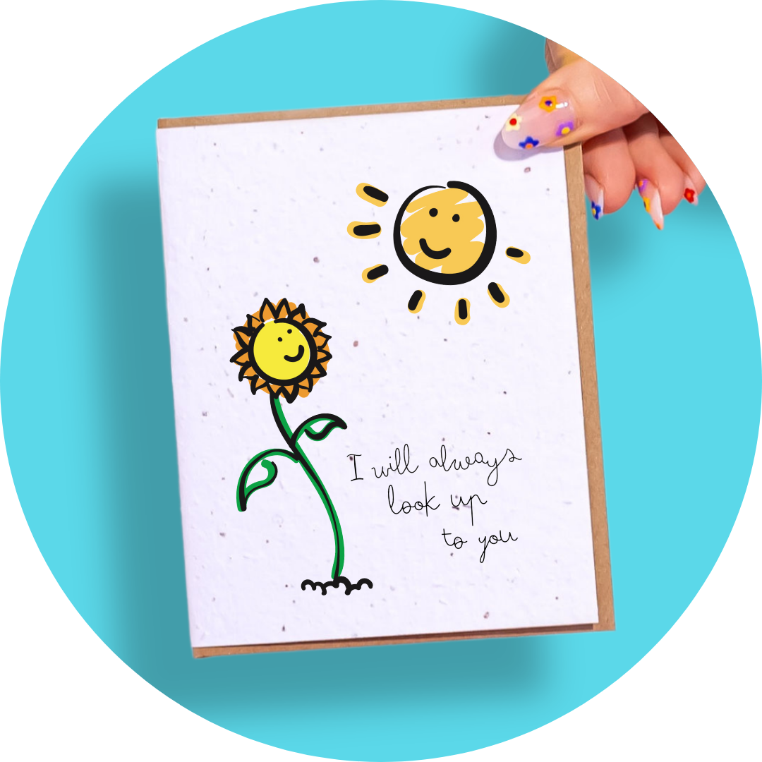 Say it with seeds! Look Up To You is the perfect way to show your special someone you care. Canadian-made of plantable seedpaper, this greeting card will bring sweet smiles with its puns and humor. Plant it to watch it grow, and it's sure to bring many more happy memories. Get planting and spread lots of love!