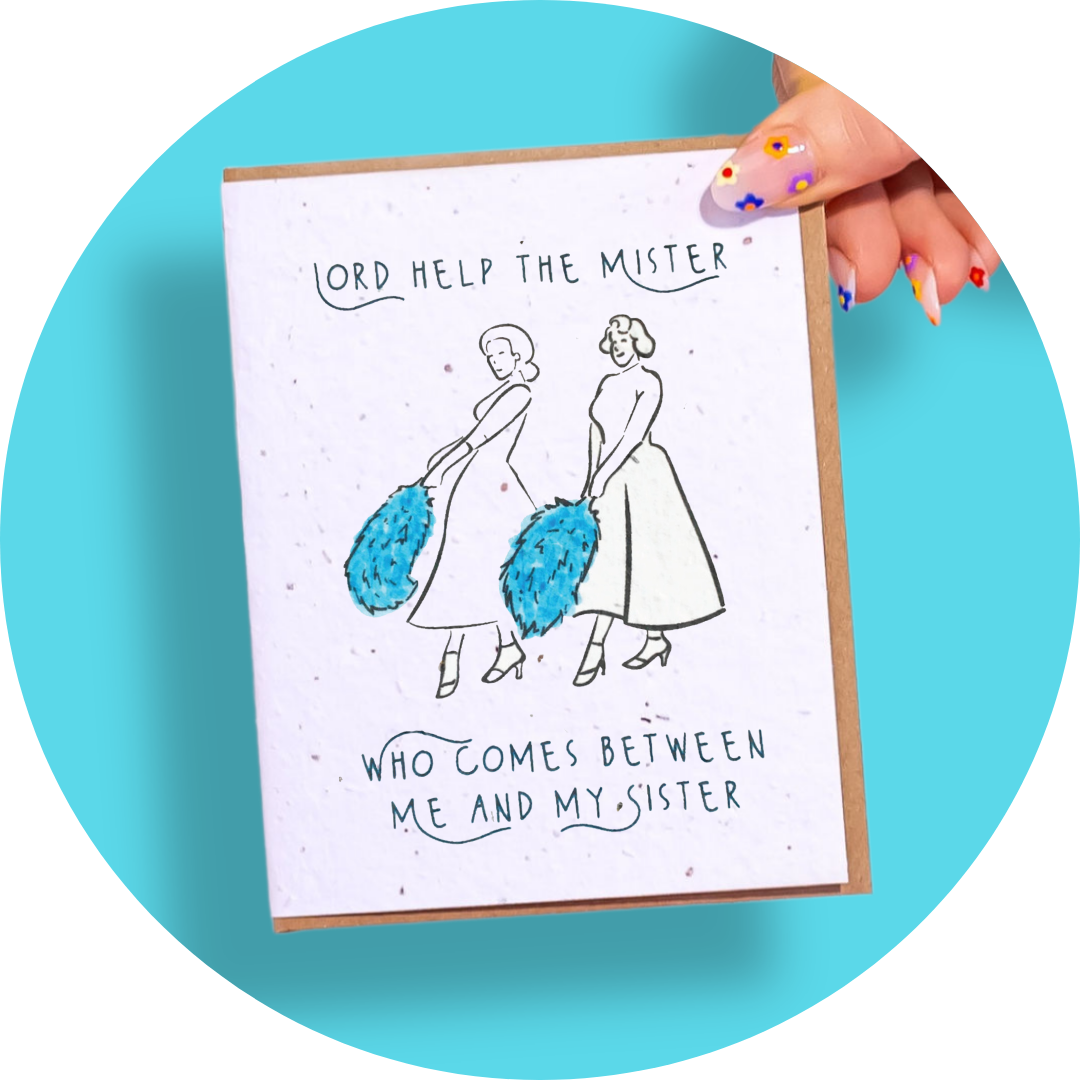 Brighten up your day with the Lord Help The Mister greeting card inspired by the 1920's "White Christmas (if you're sentimental like that)! This plantable Canadian card is made from wildflower seedpaper, so not only can you give your sister smiles and love, you can give her a lasting reminder of your appreciation with a sweet-smelling garden! A pun with every petal—it's a perfect way to show you care!
