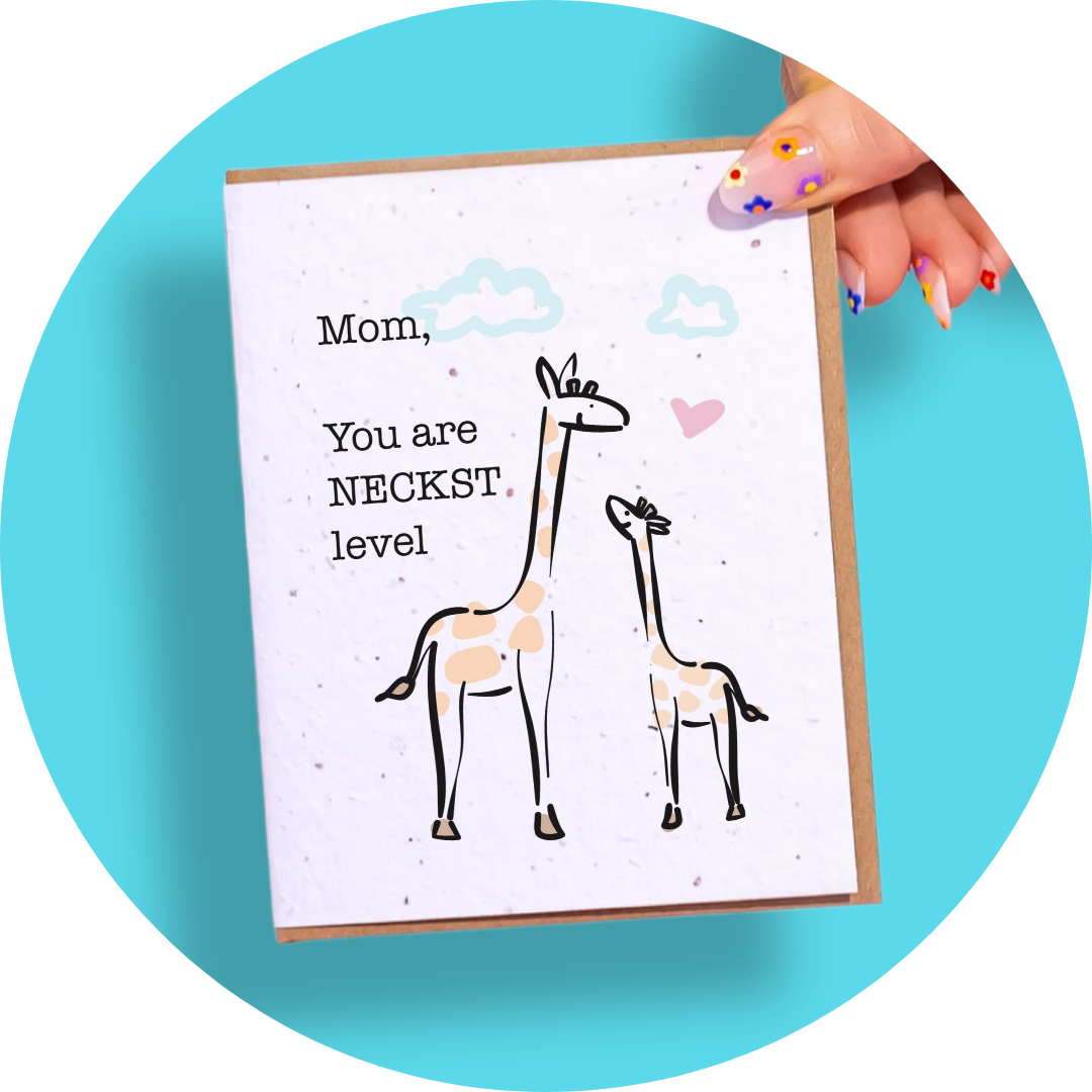 This quirky giraffe Mother's Day card has it all: artistic illustration, a message of appreciation, and a sweet surprise—it's plantable! Show your Mom she's the neckst level with a card she'll never forget!