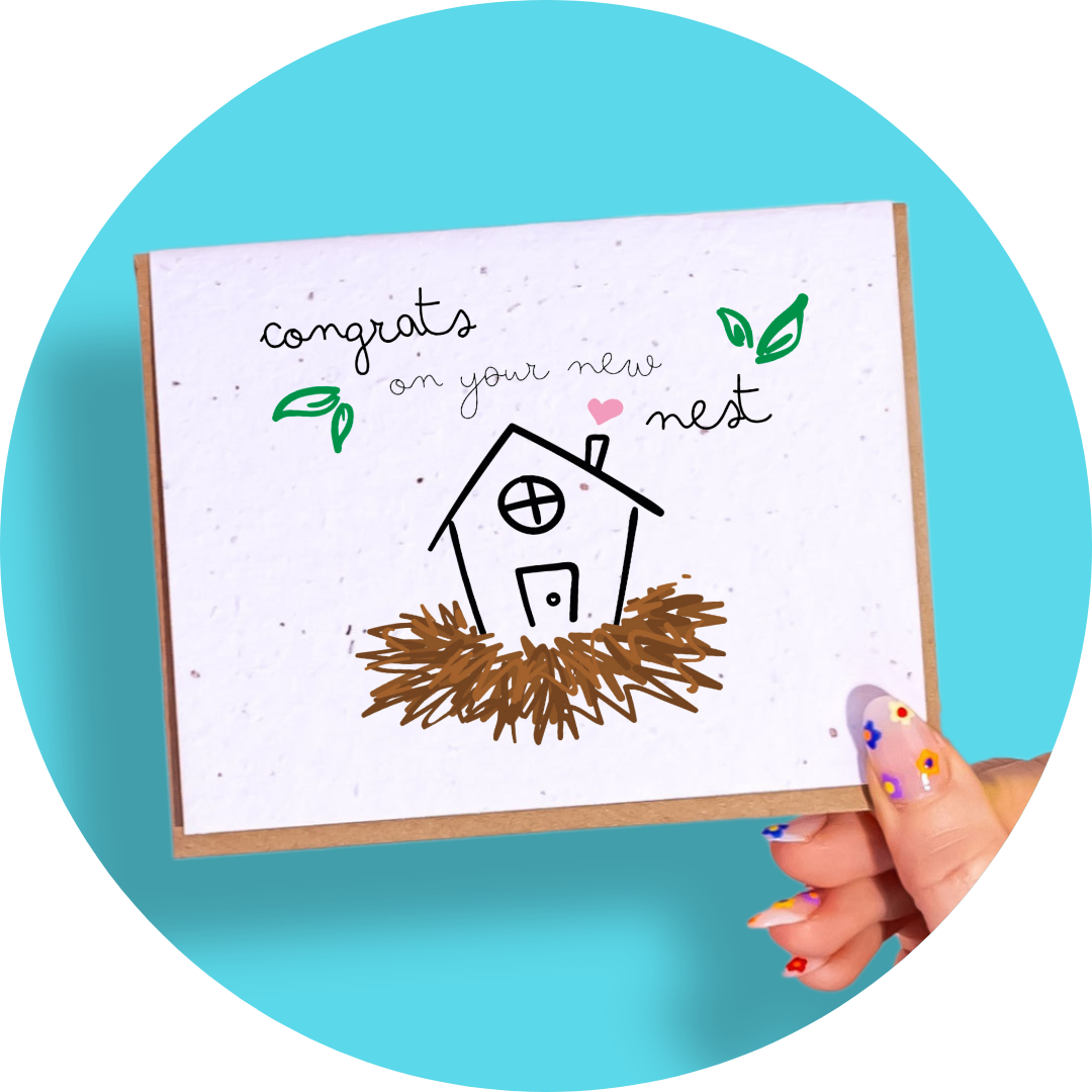 Welcome someone to their new home with the perfect punny greeting! New Nest greeting cards are plantable, meaning not only can you send your congratulations - you can also send some sprouts of joy! So go ahead and give your best wishes with a card that'll keep on growing.