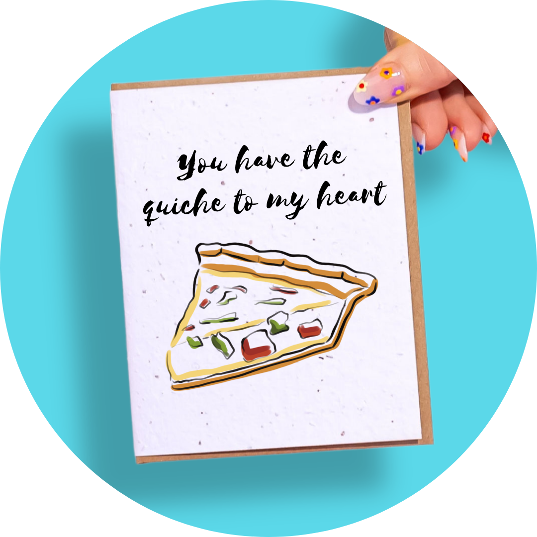 Spread some cheesy love with Quiche to My Heart! With this plantable greeting card, you can share your gratitude in more ways than one! Quiche not included.