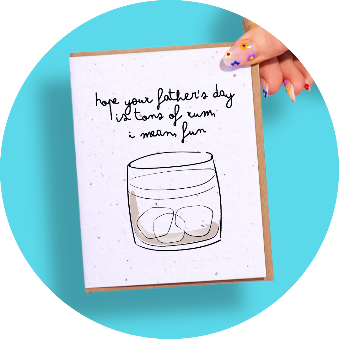 Send Dad a real treat this Father's Day with Tons Of Rum! They say two things never go out of style - puns and rum! Our plantable greeting card comes with a pun active seed paper so you can make Dad's day extra special. Plant the paper and watch the puns bloom!