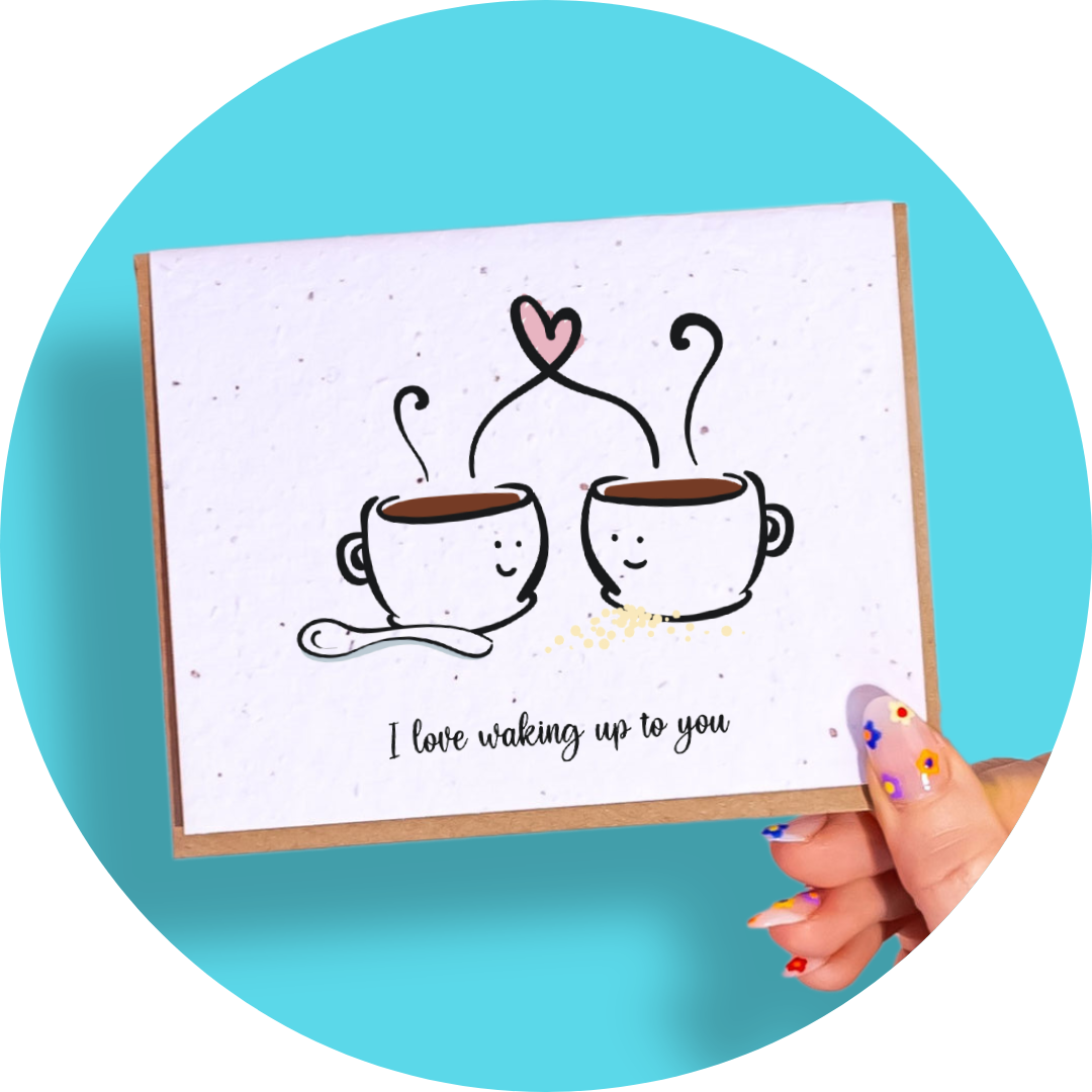 Start your special someone's day with the gift of love and coffee! Our Wake Up to You card gives you the perfect way to show your appreciation with a punny twist. With elegant plantable paper, your heartfelt message will grow even after your greeting card does!